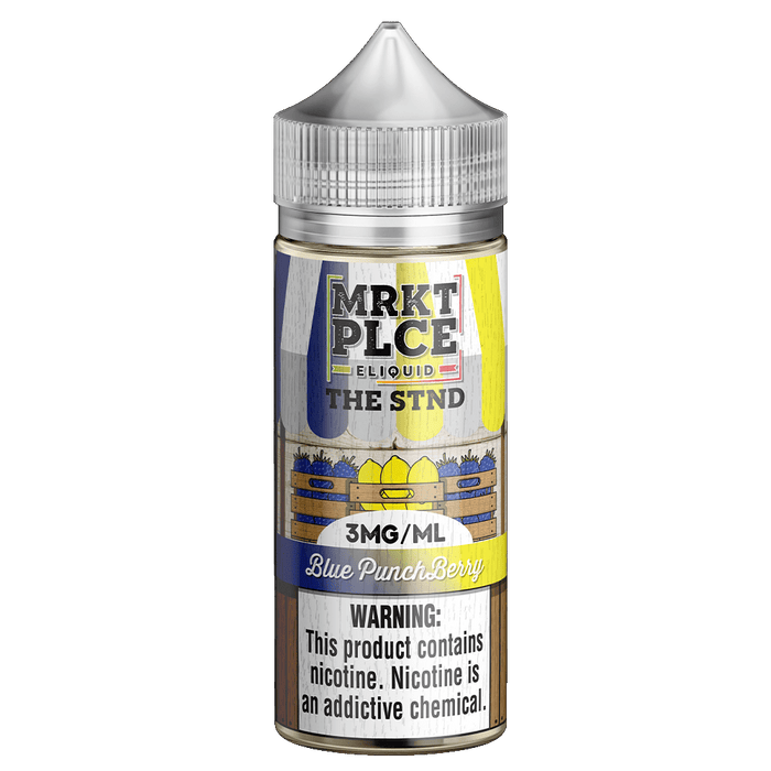 Introducing Blue Punchberry by MRKT PLCE THE STND, a refreshing vape juice that will transport you to sunny days and cool breezes with every puff. This delightful blend features a blue raspberry lemonade base, perfectly complemented by a tasteful splash of lime, creating a flavor profile that is both tangy and sweet.