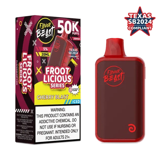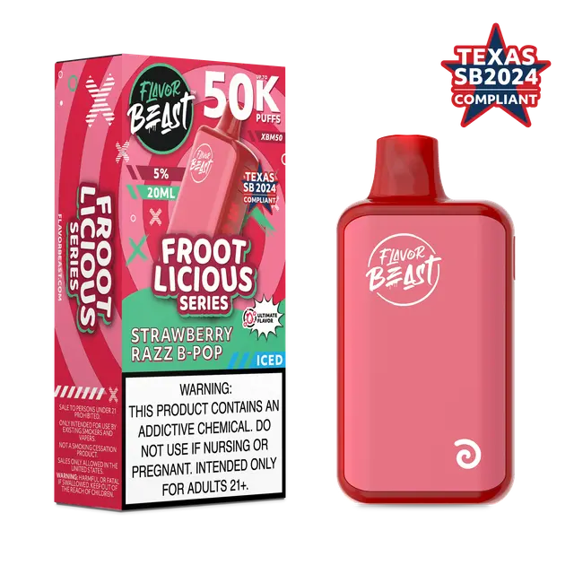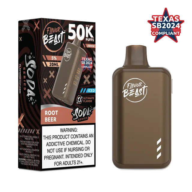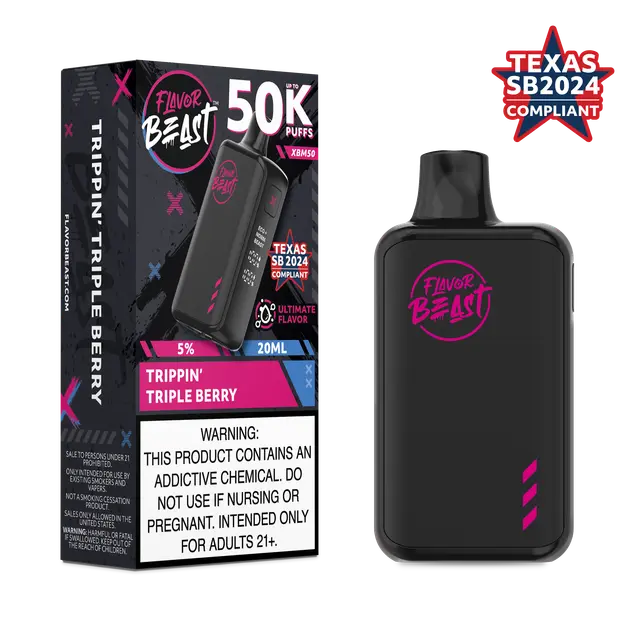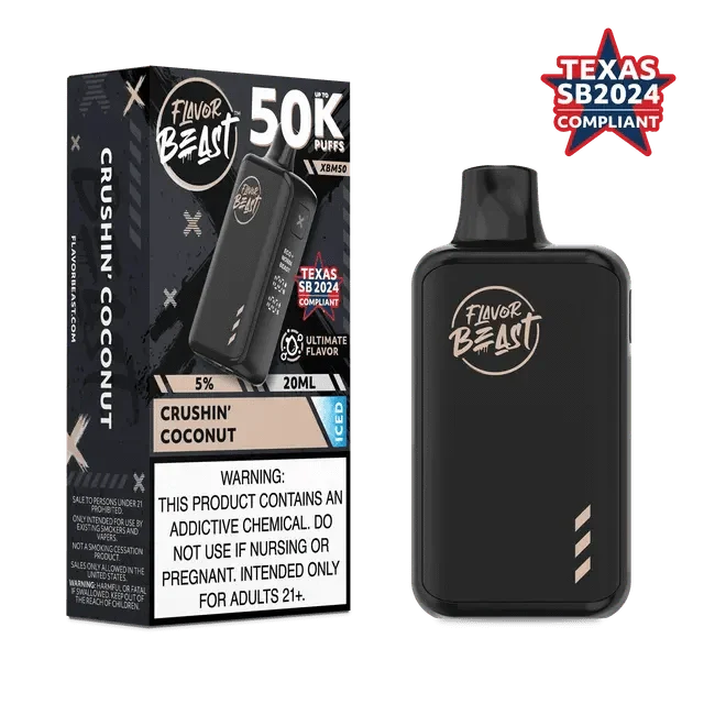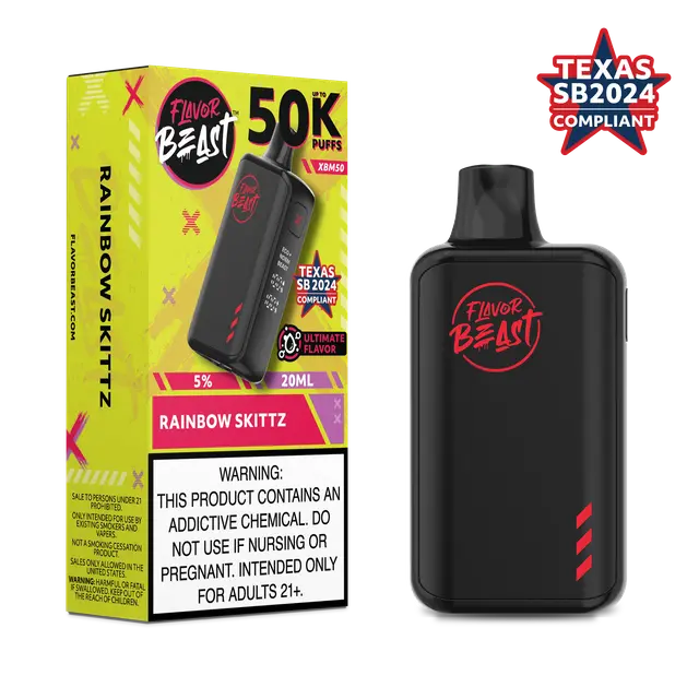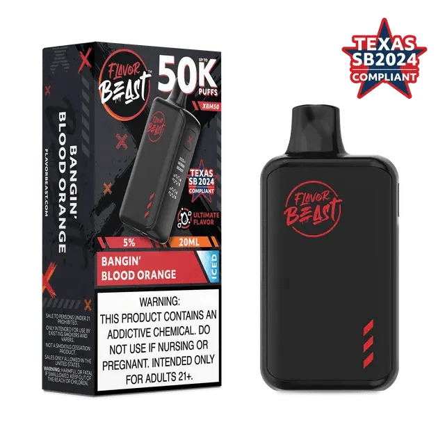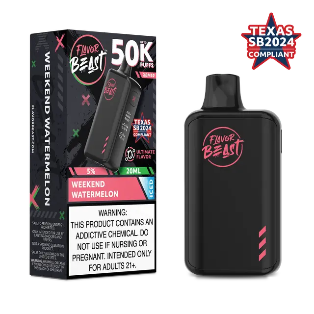 Unleash bold flavor and massive performance with the Flavor Beast XBM50 50K Disposable, a powerhouse device built for vapers who want it all. Texas SB2024 compliant and engineered for satisfaction, the XBM50 delivers up to 50,000 puffs of pure flavor intensity from its 5% (50mg) nicotine formula.