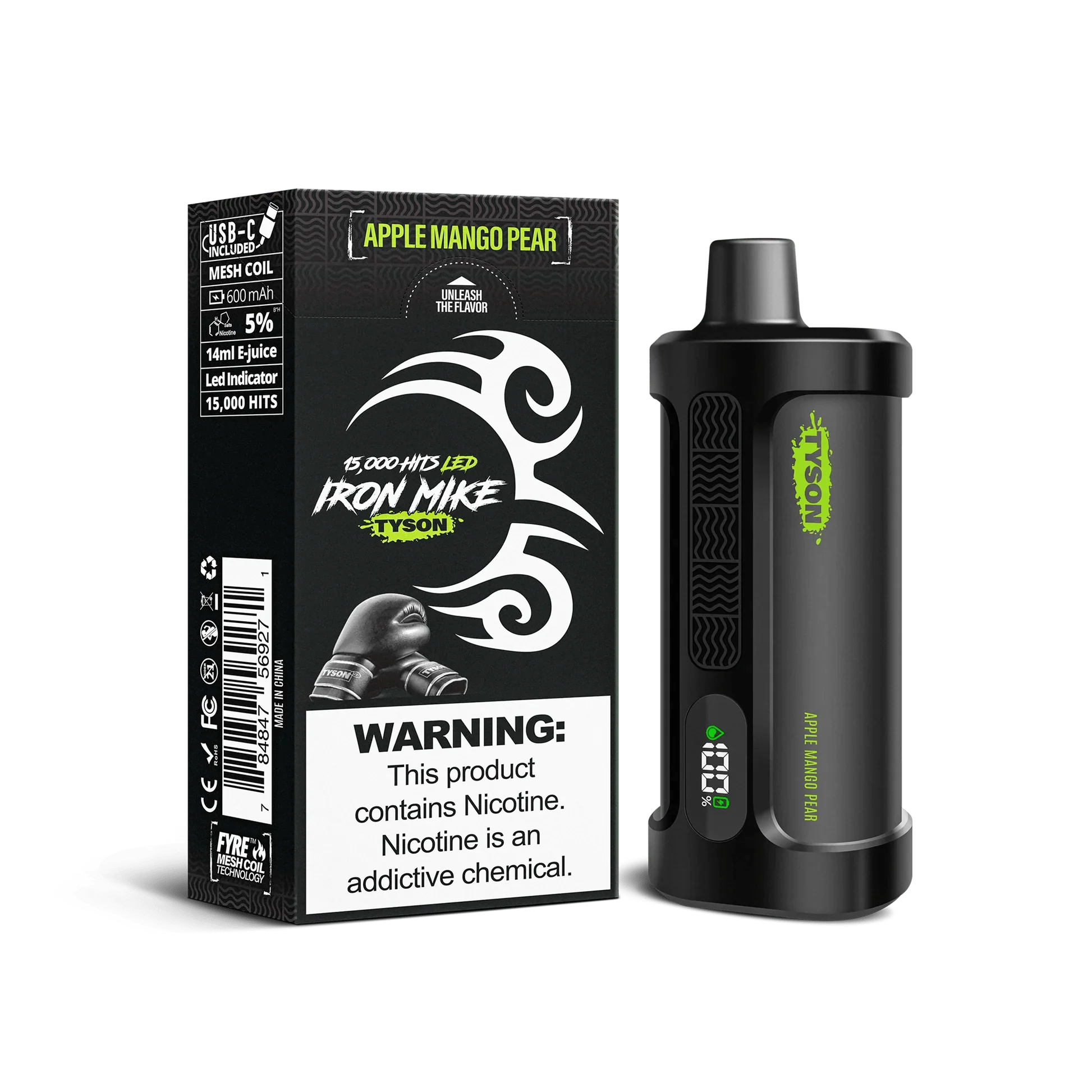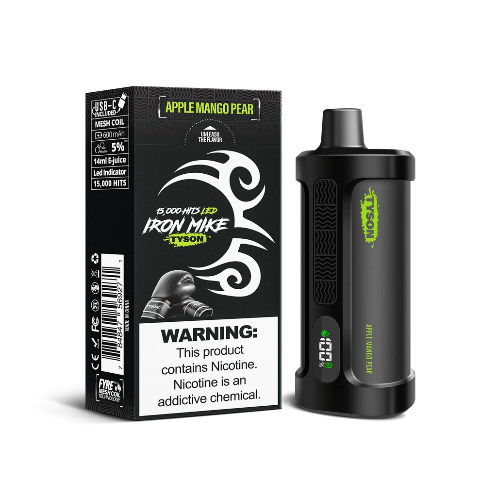 Unleash the power of performance and flavor with the Tyson Iron Mike 15000 Disposable, a premium vaping device designed for convenience and satisfaction. Featuring an advanced Fyre Mesh Coil for smooth, flavorful clouds, this disposable vape delivers up to 15,000 puffs. Perfect for on-the-go users, it’s packed with impressive features like a 600mAh rechargeable battery and a smart LED display to keep you informed about battery life and e-liquid levels.