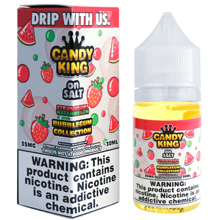 Experience a refreshing summer twist on a classic with Candy King On Salt's Strawberry Watermelon Salt - Bubblegum Series. This 30mL bottle infuses the sweet and chewy taste of bubblegum with the juicy sweetness of ripe strawberries and refreshing watermelon for a truly delightful vaping experience.