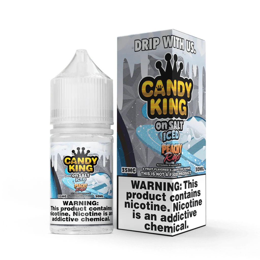 Indulge in a cool twist on a classic candy favorite with Peachy Rings SALT on ICE by Candy King On SALT! This delicious nicotine salt blend brings together the luscious sweetness of ripe peaches with the chewy, irresistible flavor of gummy candy, all topped off with a refreshing blast of menthol for a frosty finish.