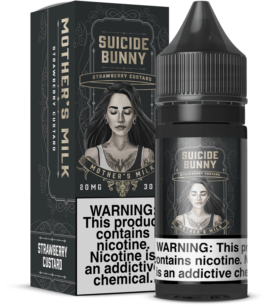 Experience the timeless allure of "Mother's Milk SALT" by Suicide Bunny, an award-winning vape juice that has captured the hearts of enthusiasts worldwide. This exquisite blend features a perfectly balanced combination of ripe strawberries and creamy custard, creating a flavor profile that is as luxurious as it is comforting.